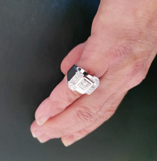 Bague Art Déco Ronde Rubis Et Diamants Roses