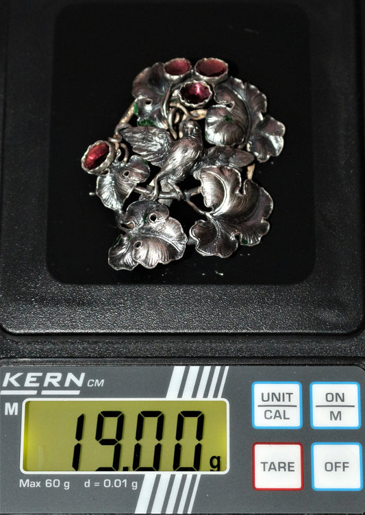 Pendentif Broche Napoléon III trois ors diamants grenat