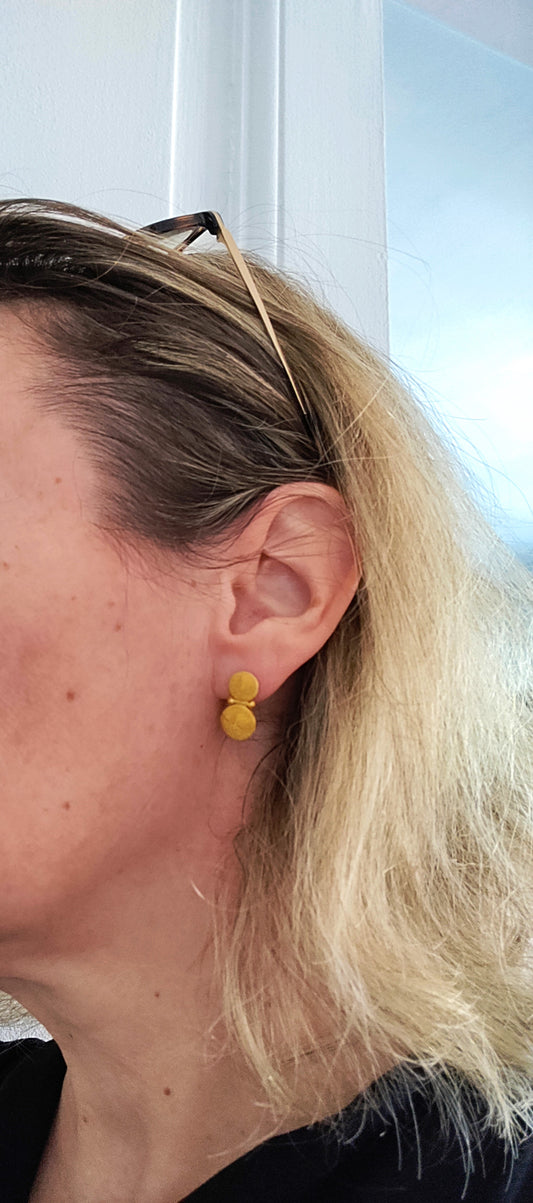 Paire De Puces d'Oreilles Opales Noires Or Jaune