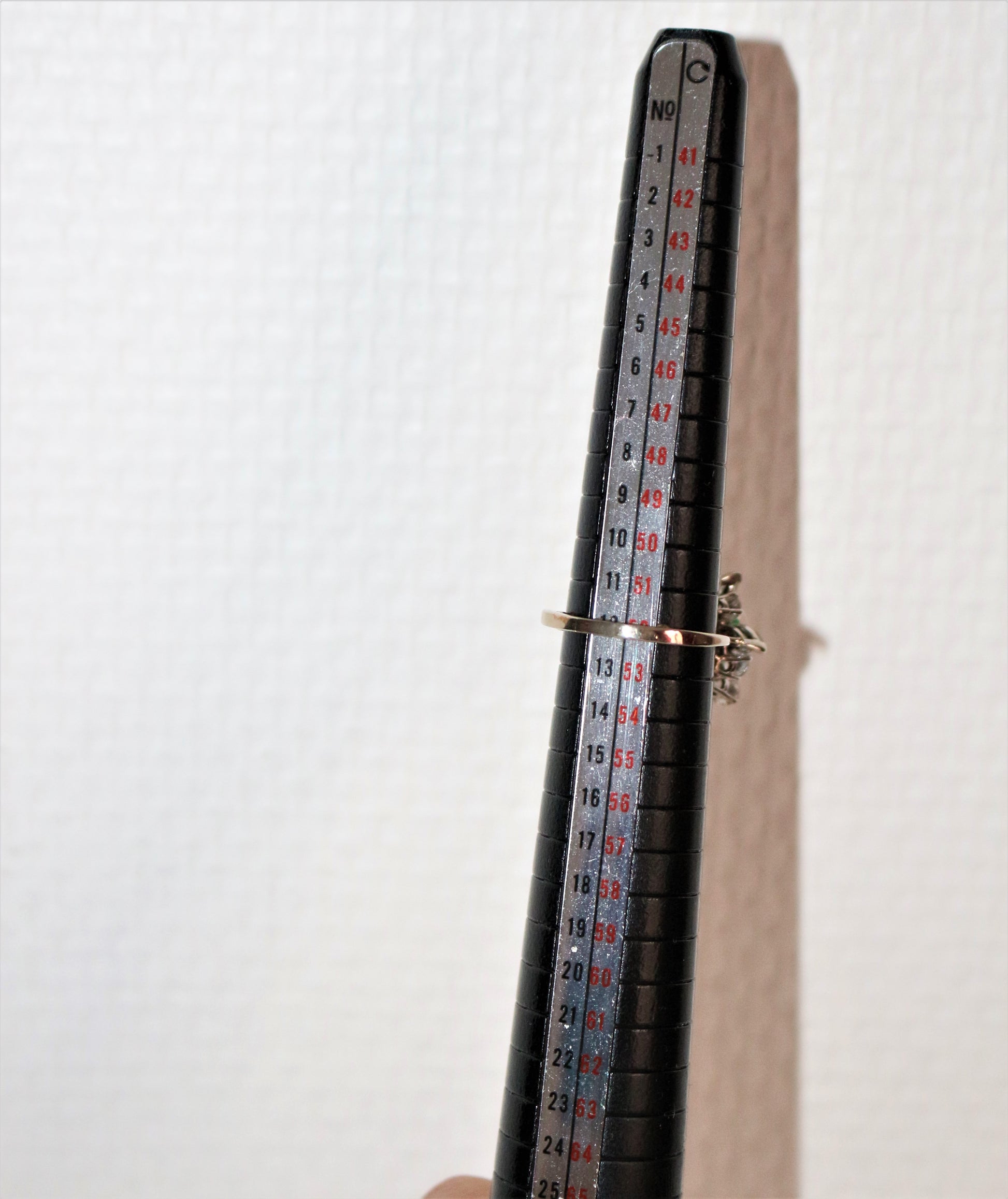 tour de doigt : 52 (avec 2 rétrécisseurs de 2 mm), le diamètre interne sans les rétrécisseurs mesure 1,85 cm