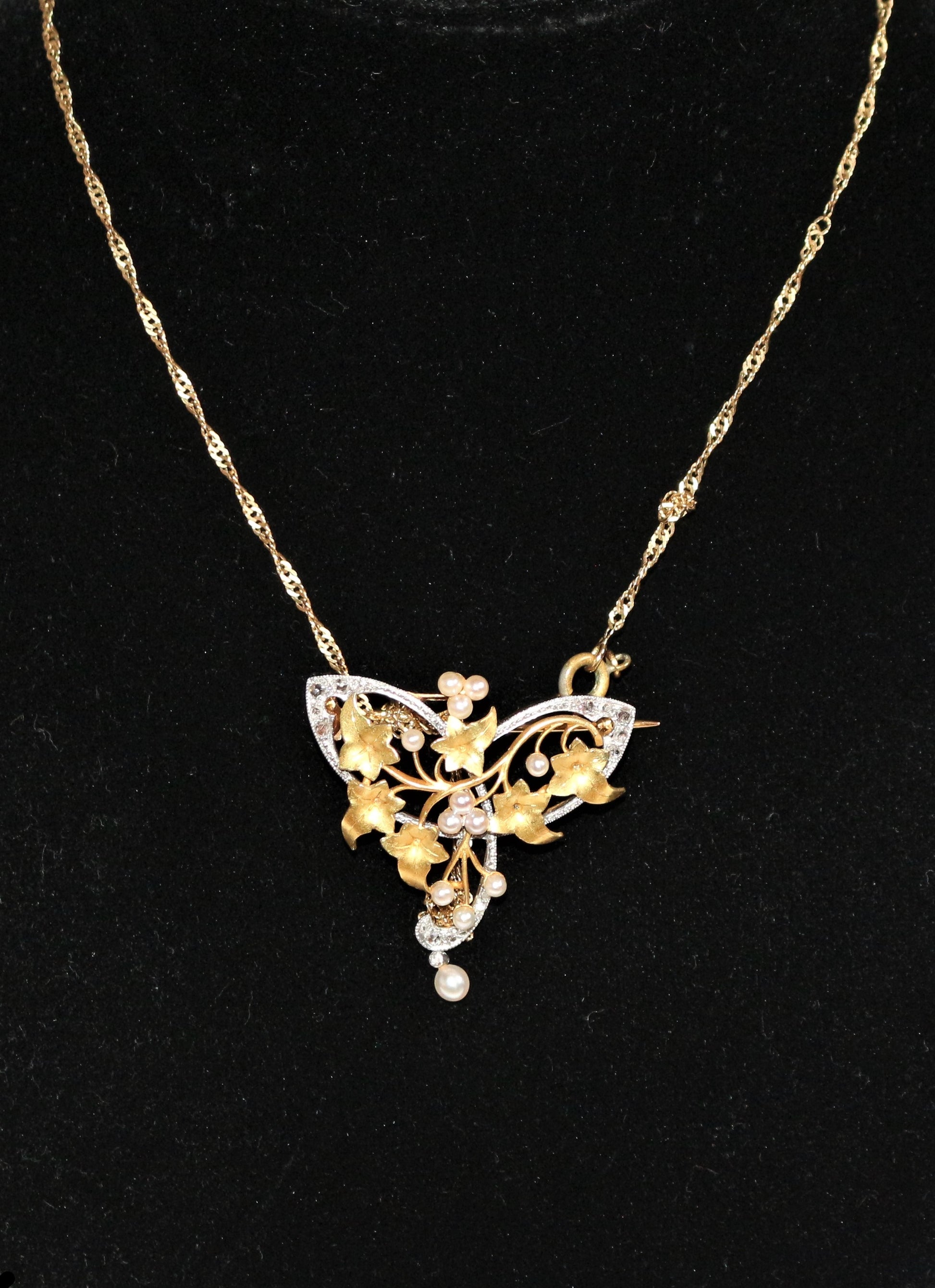 Broche ou pendentif d’époque Art Nouveau (1900) au décor végétal
