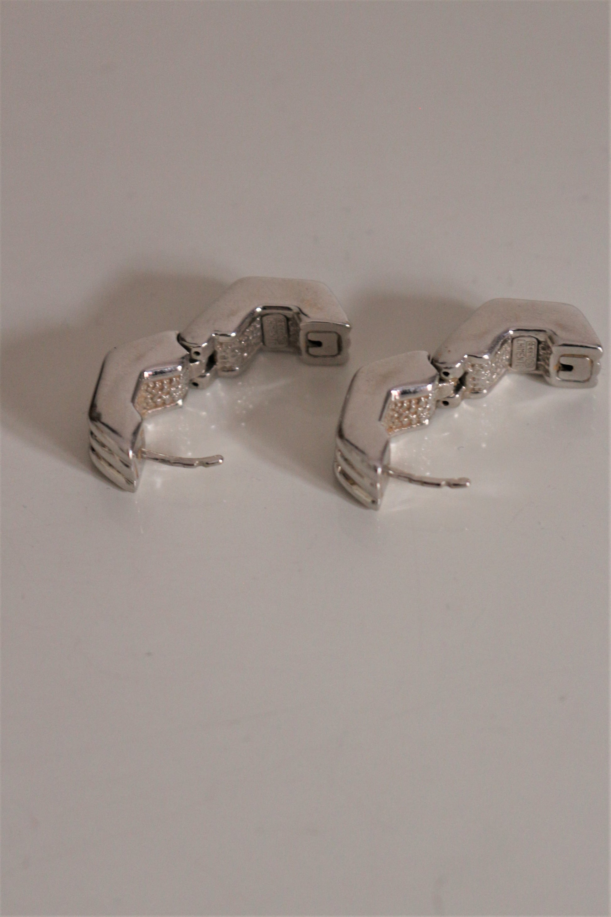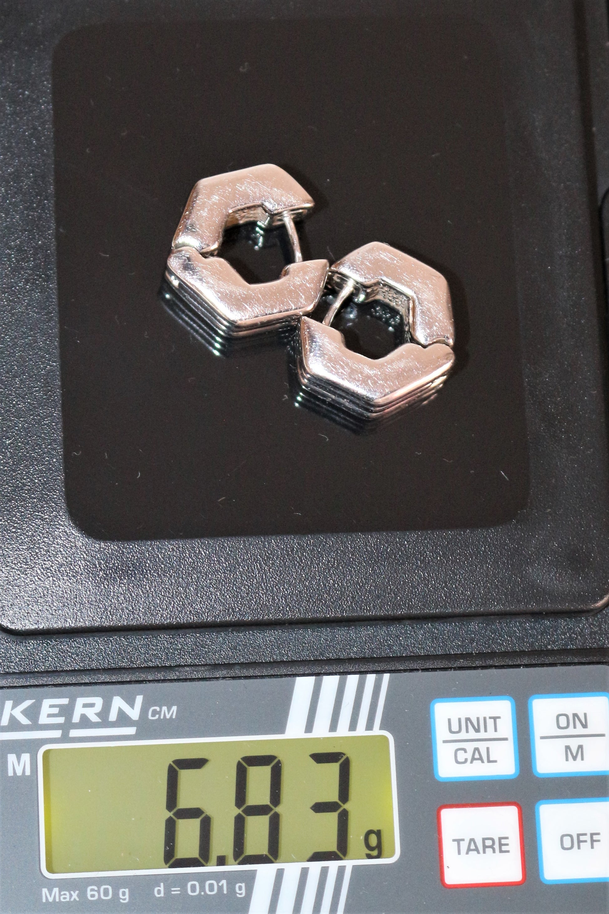 CHIMENTO paire de boucles pour oreilles percées vintage godronnées en or blanc 750/1000e (18k) de forme hexagonale