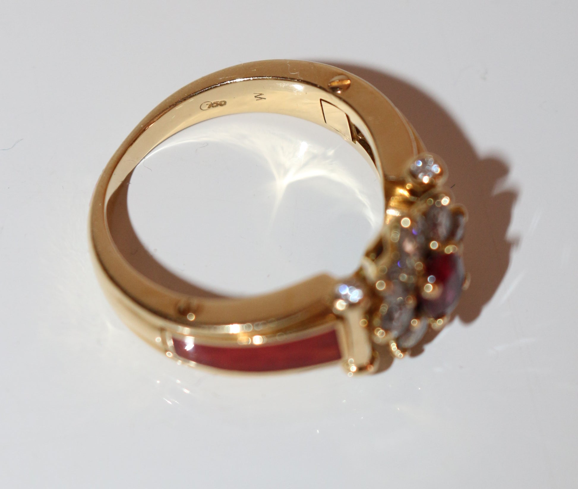 poinçons : 750 + M + poinçon d'orfèvre à demi-effacé, marque Korloff en or sur l'émail rouge
