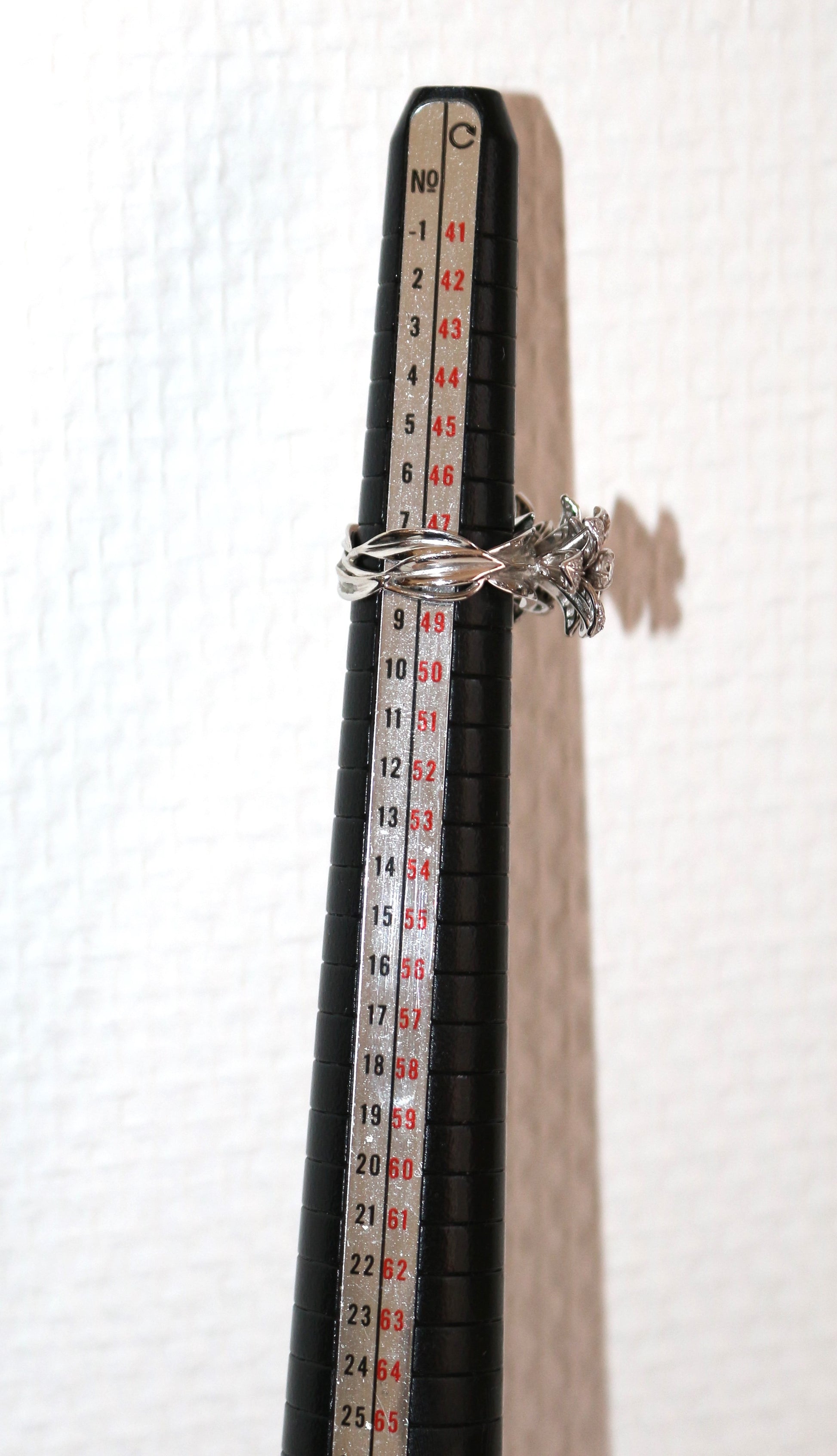 Tour de doigt : 48 (difficilement modifiable, compte tenu du travail de l'anneau)