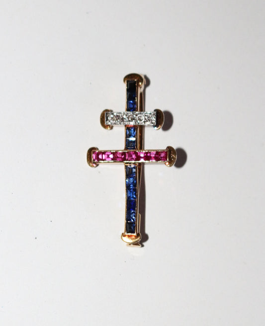 Croix De Lorraine Rubis, Saphirs, Diamants Or Jaune