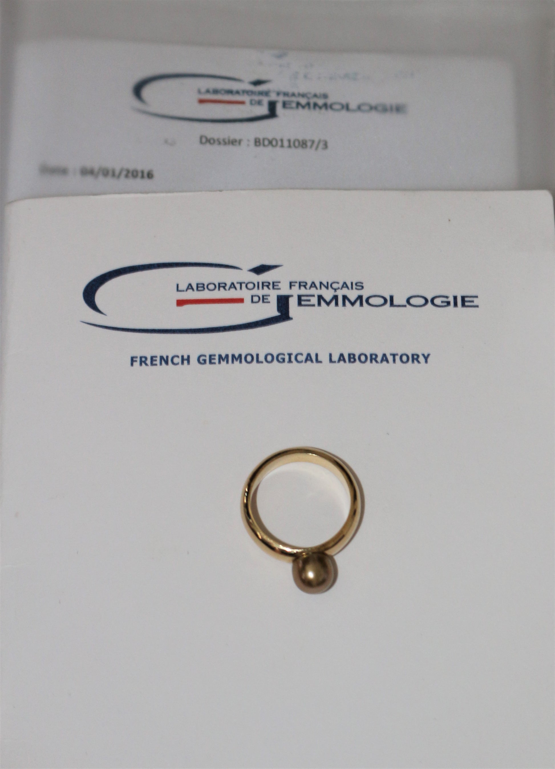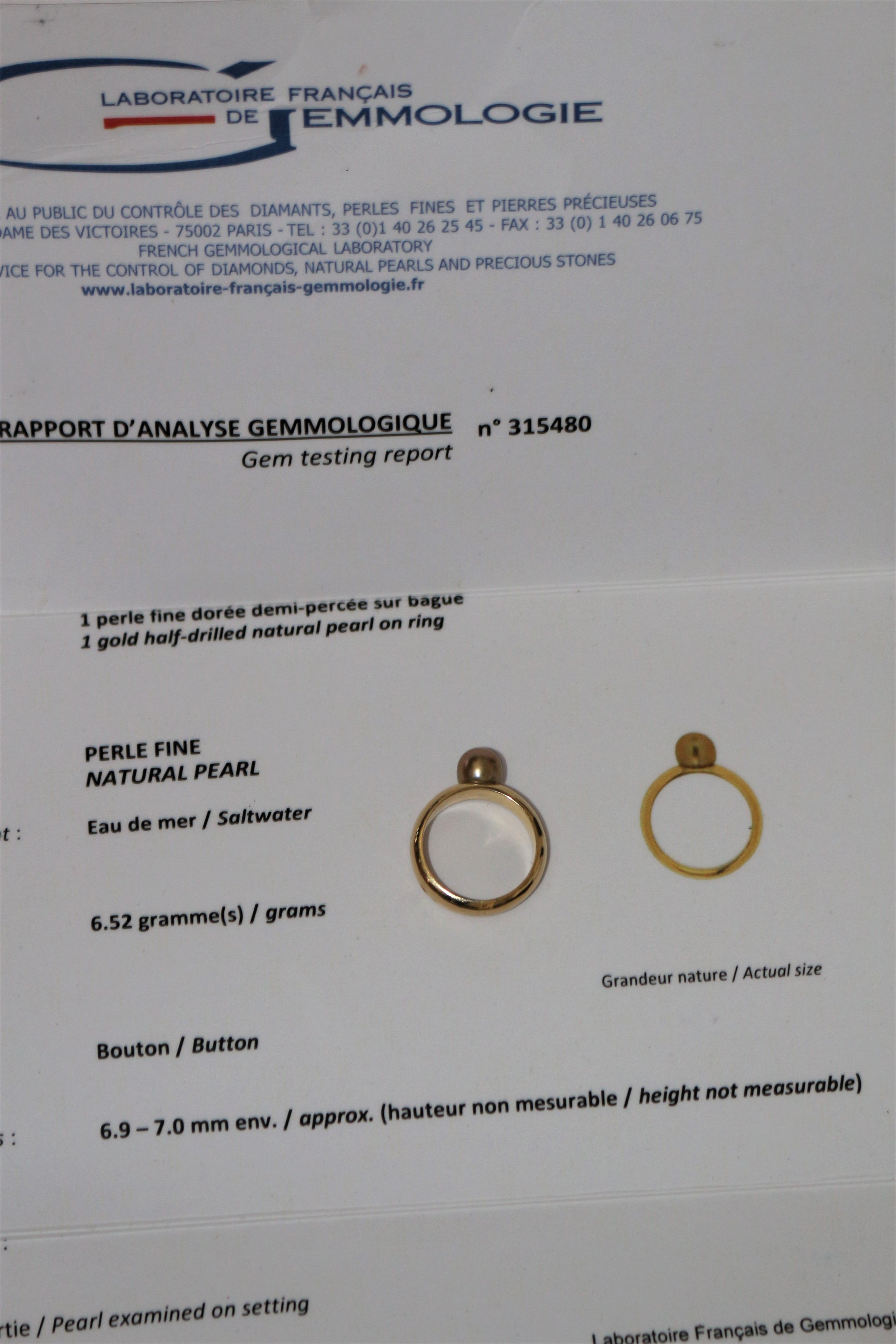 certificat fourni : complet du Laboratoire Français de Gemmologie daté du 04.01.2016 attestant : perle fine d’eau de mer, dimensions de la perle : 6.9 – 7 mm environ