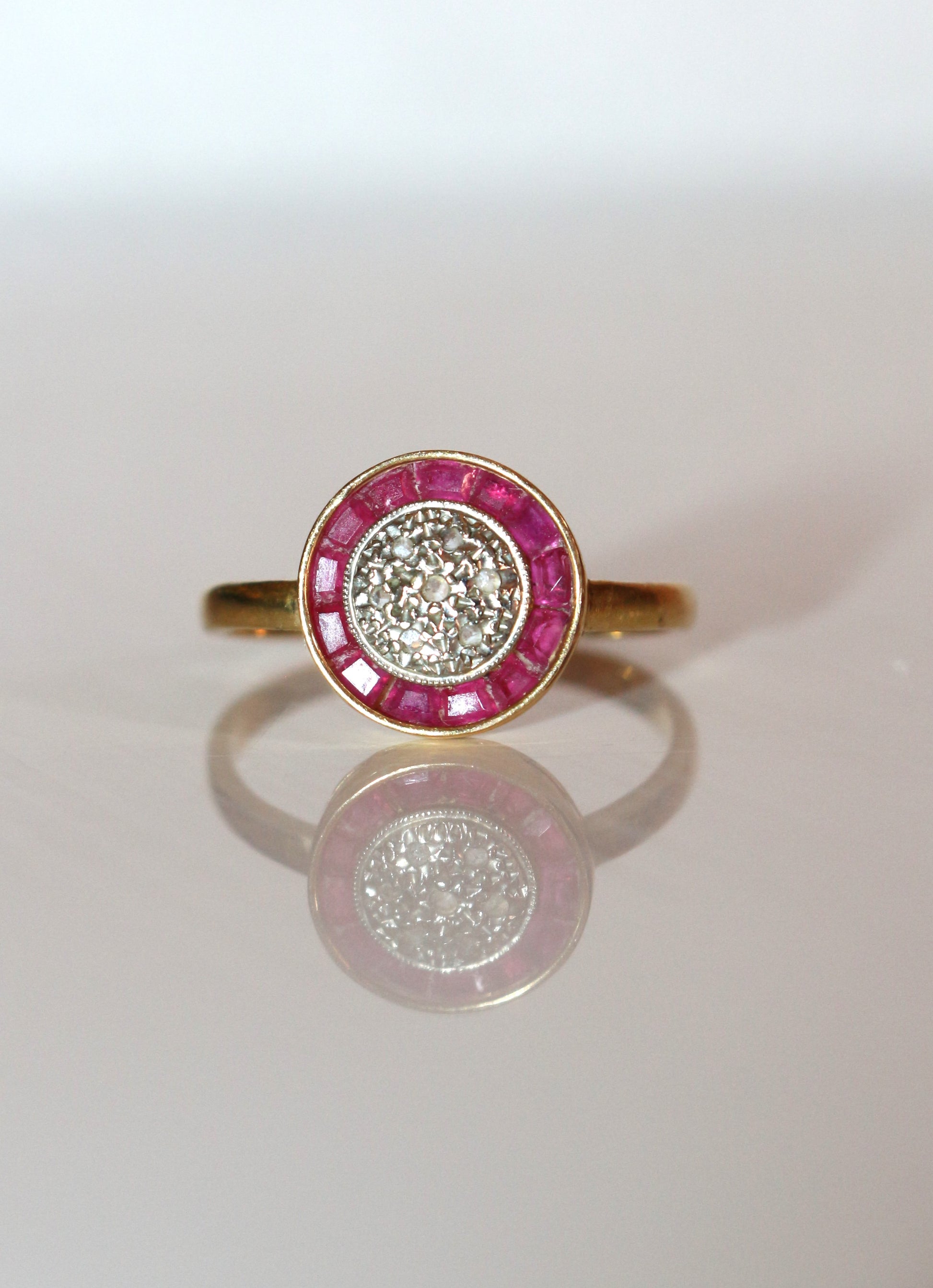 Bague Art Déco Ronde Rubis Et Diamants Roses