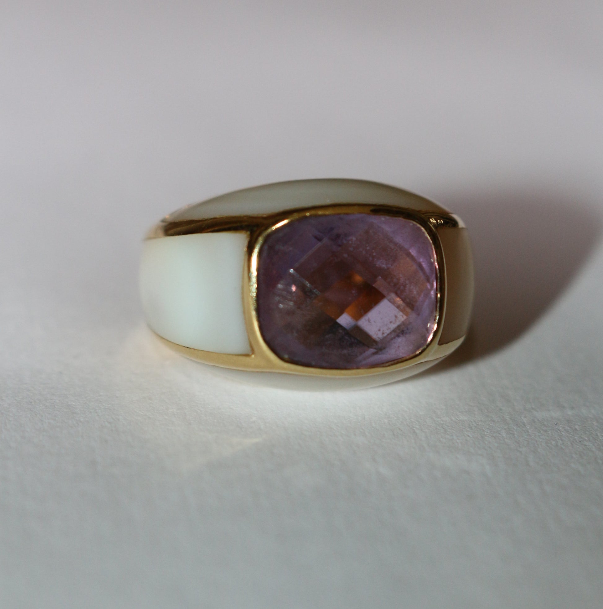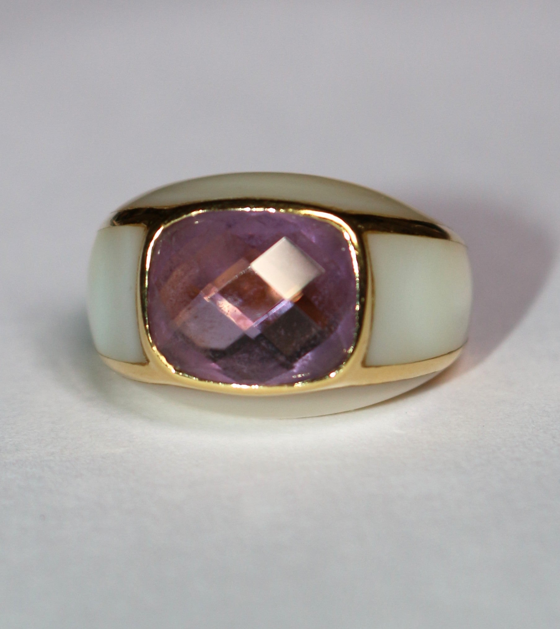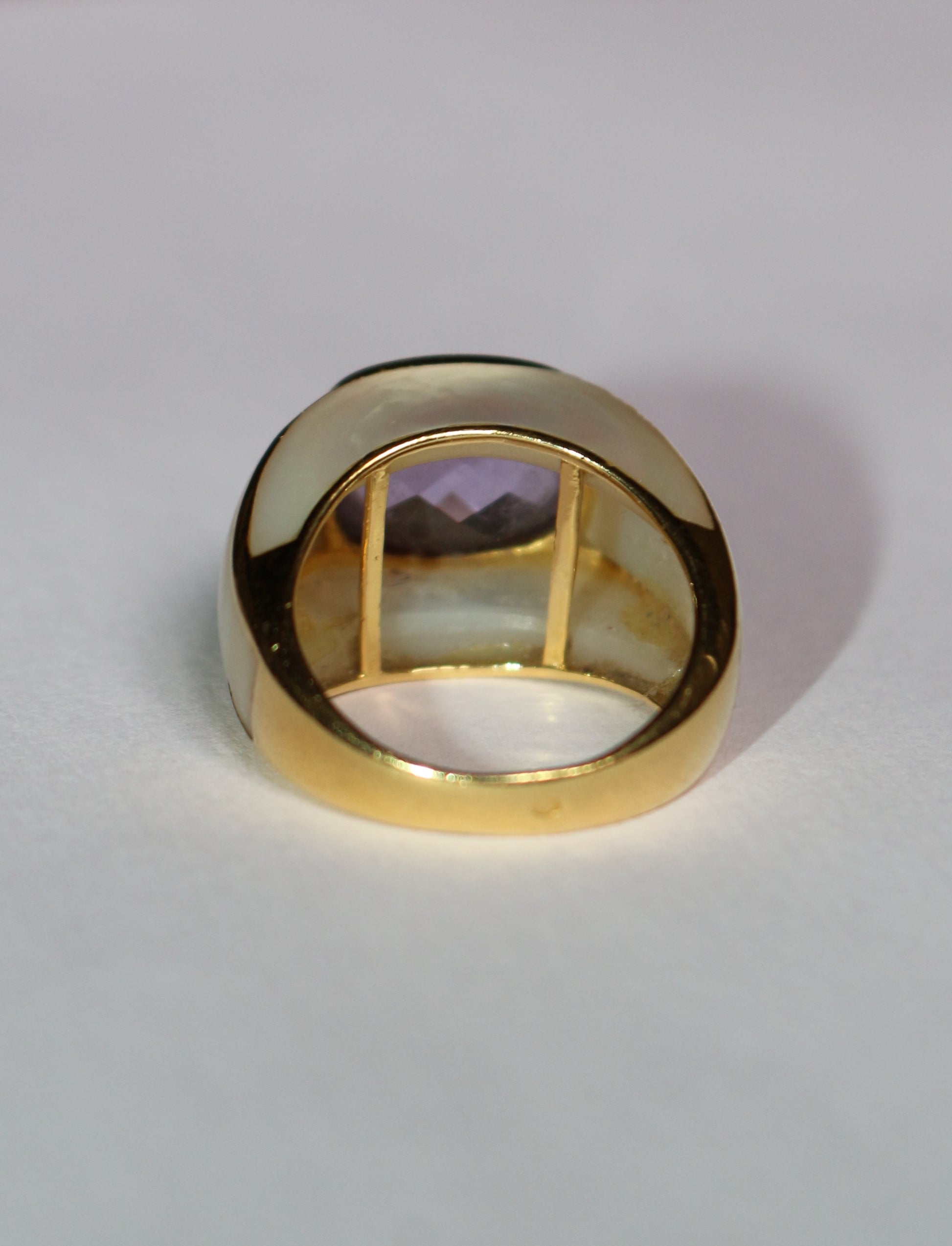 Bague jonc or jaune améthyste entourée de nacre