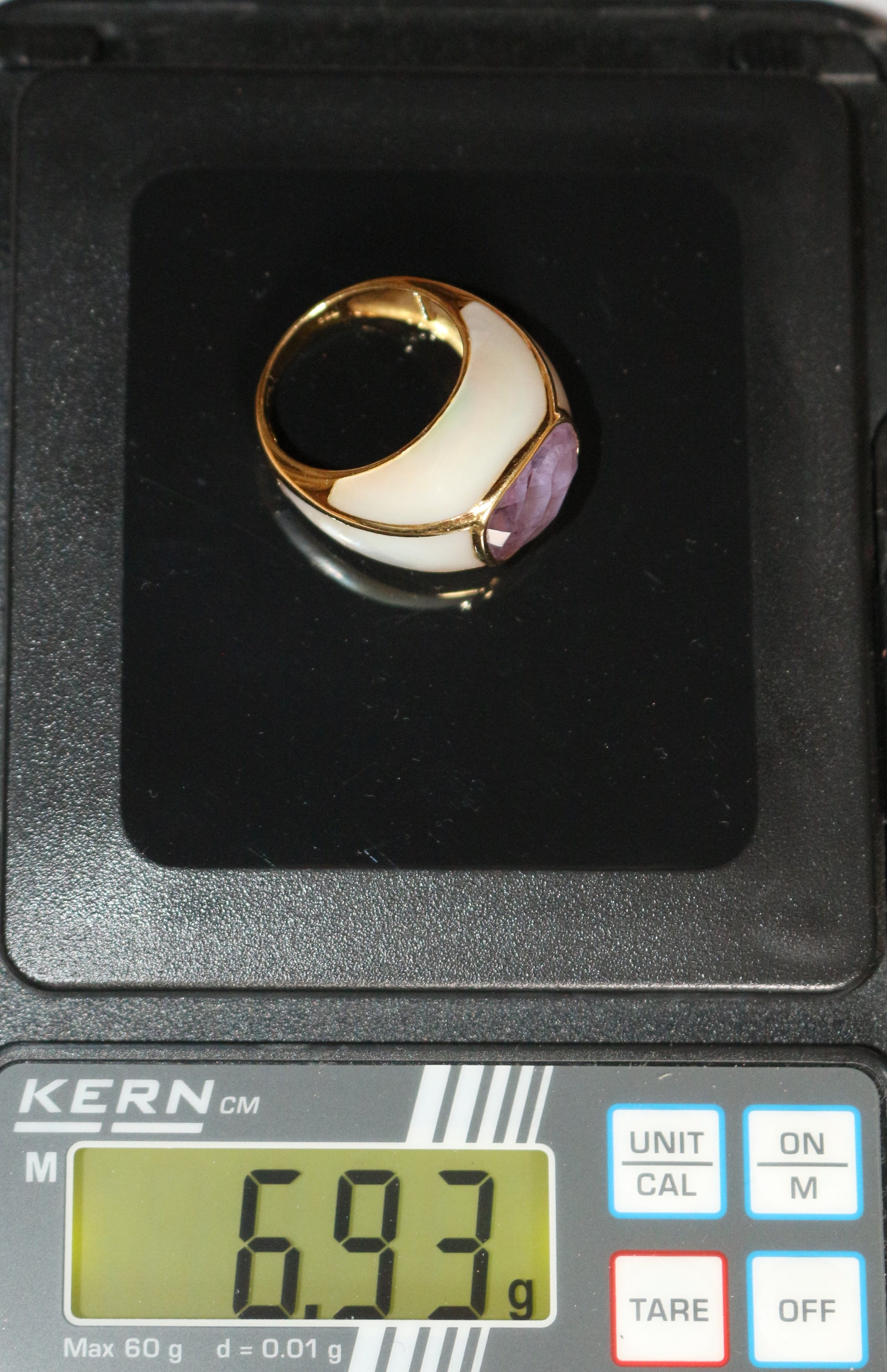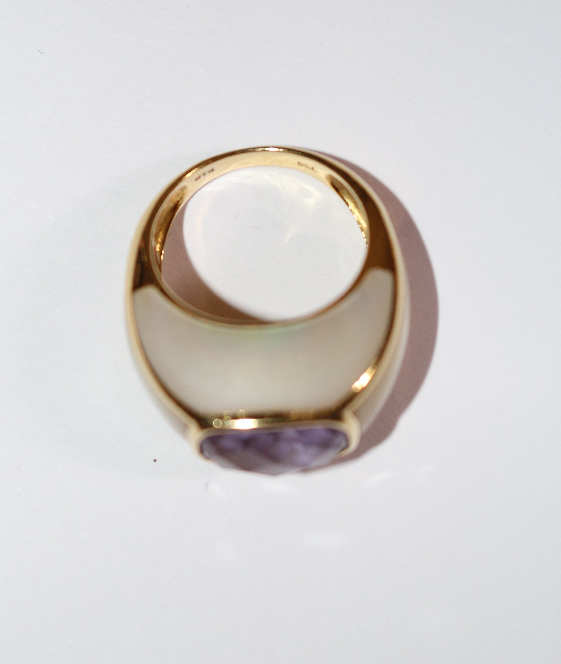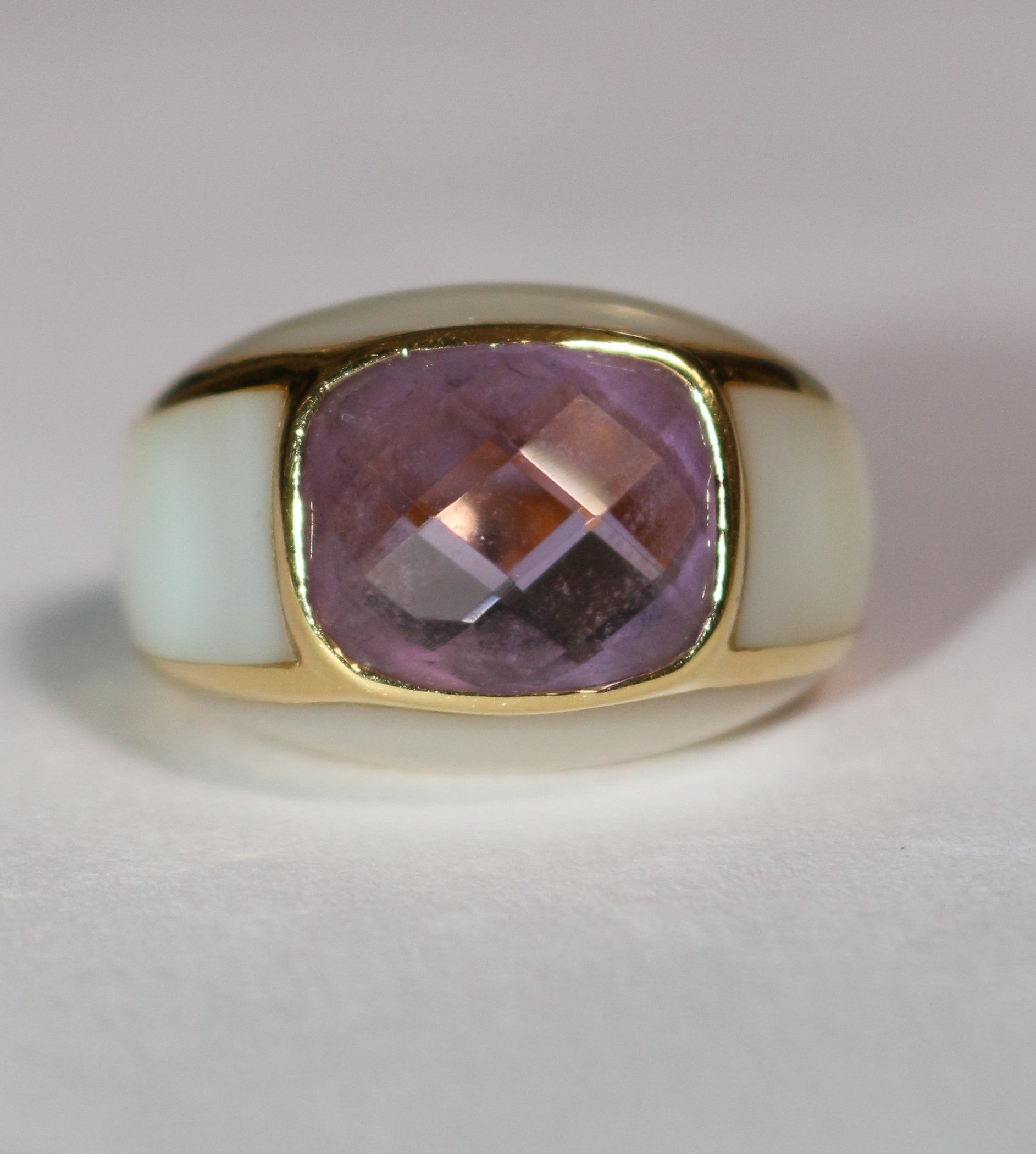 Bague jonc or jaune améthyste entourée de nacre