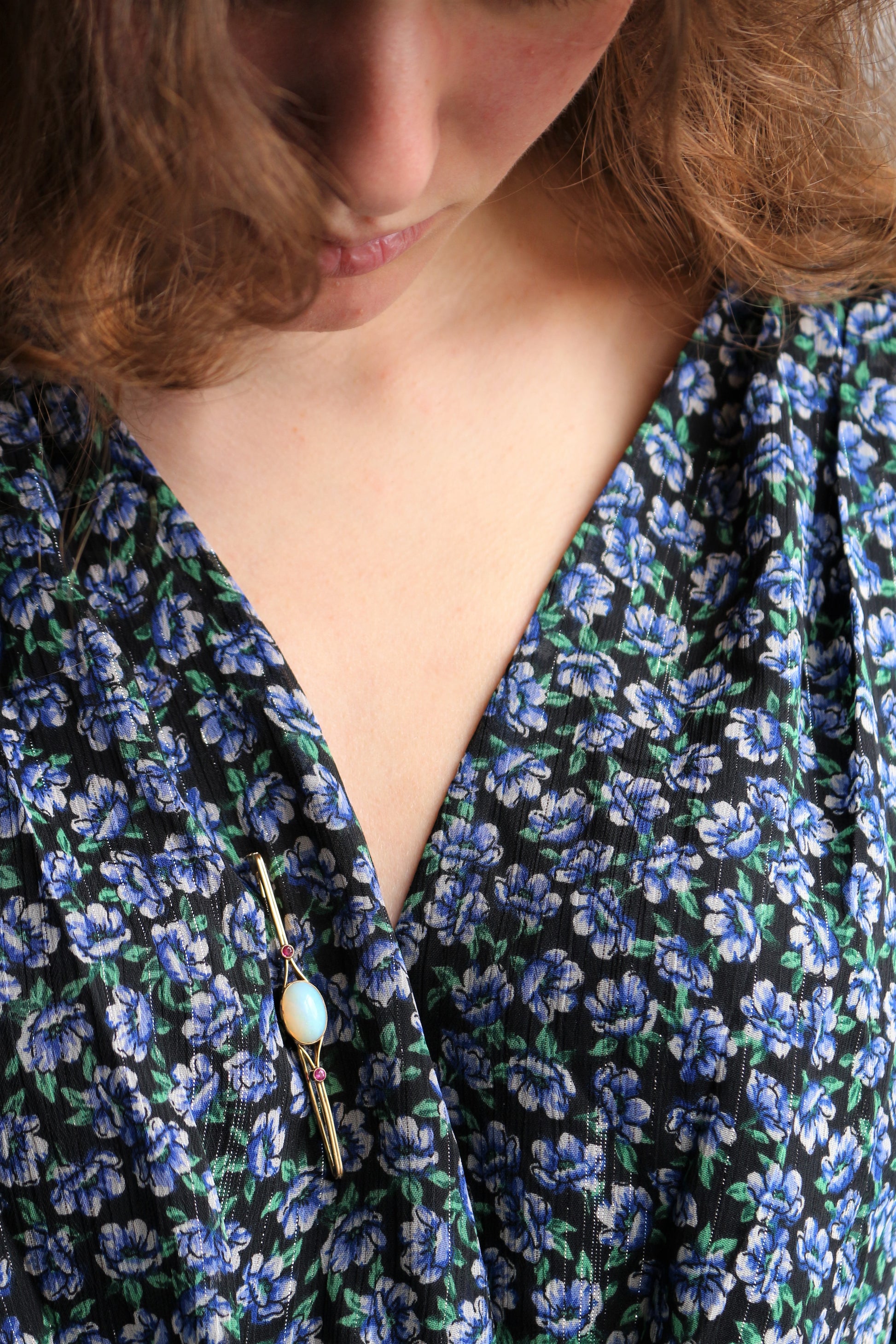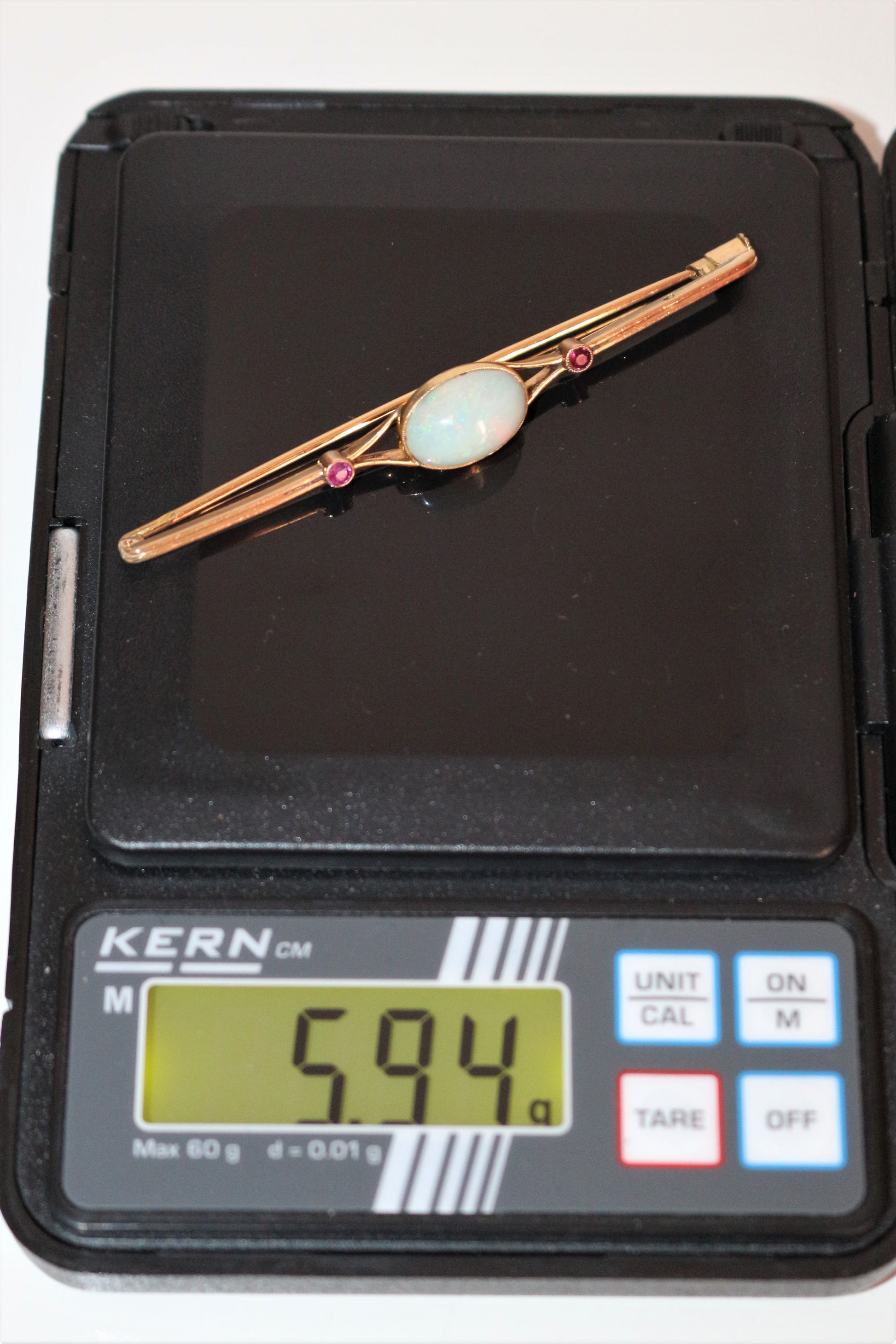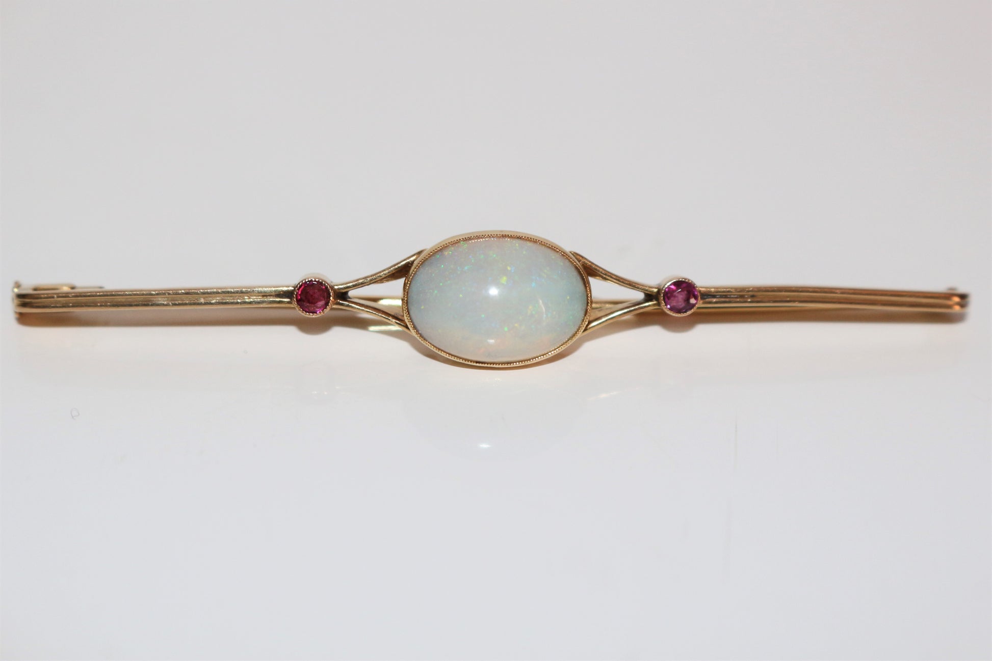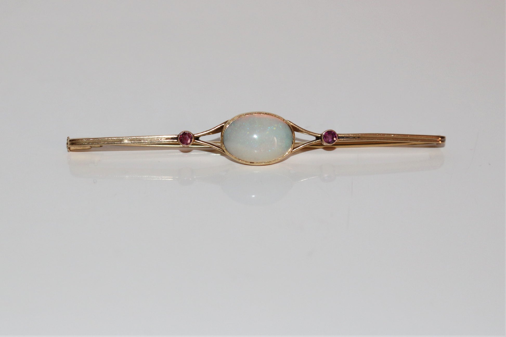 Broche barrette Opale Et Rubis Art Déco