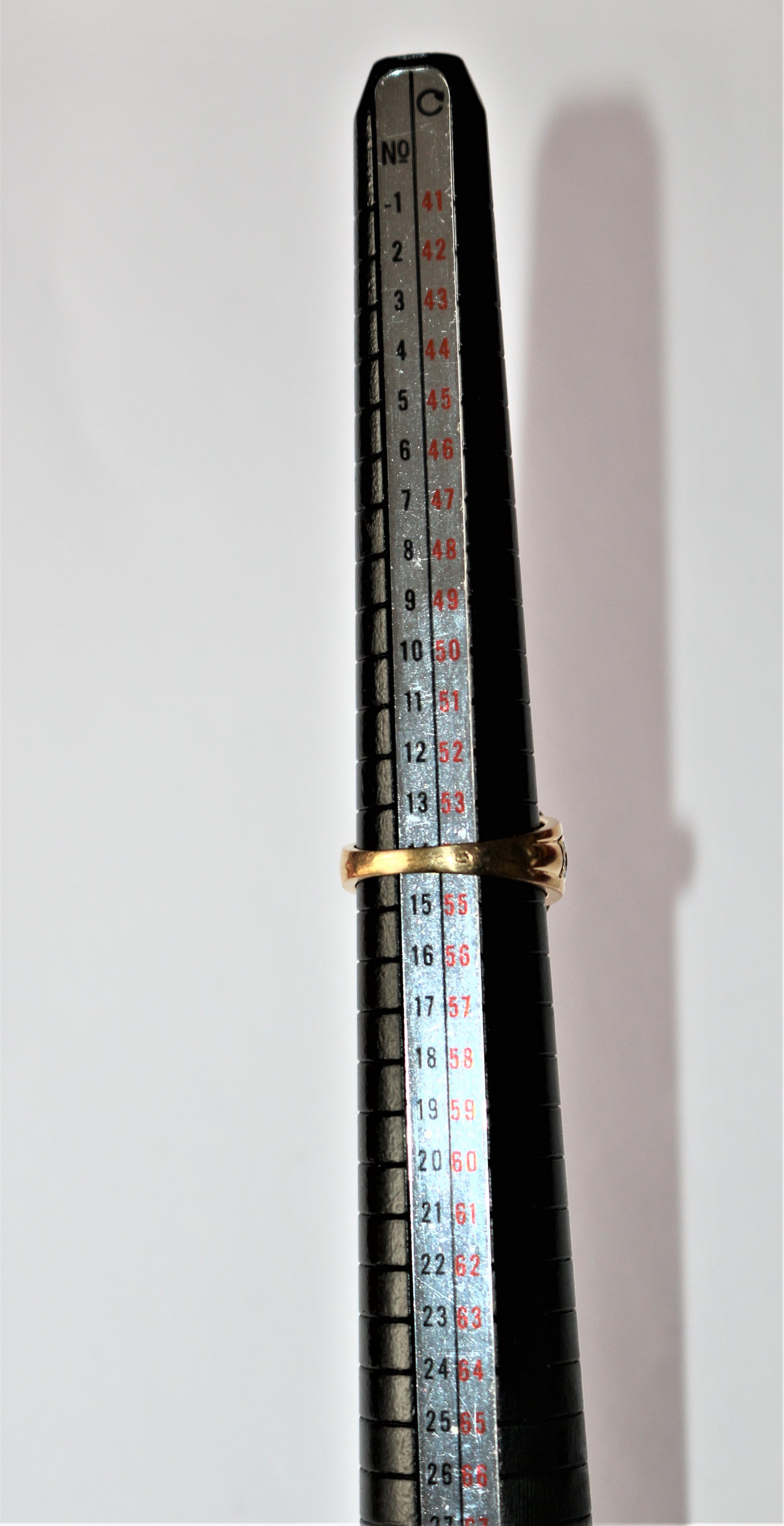 poinçons : de maître-orfèvre Korloff  à l'intérieur de l'anneau et poinçon hibou pour or 18 k à l'extérieur